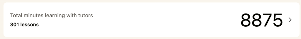 それから2年以上。気づけば総レッスン数は301回、費やした時間は8,875分(約148時間)。
